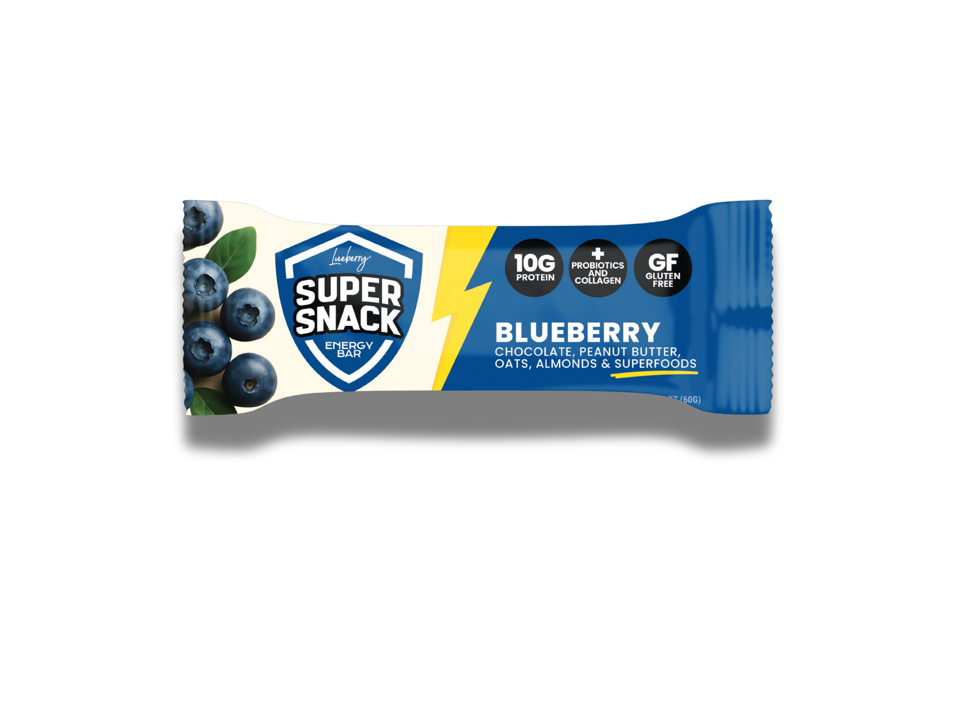 Classic flavors (Chocolate, Blueberry, Coconut, & Strawberry) 10 grams of protein, collagen, probiotics, are gluten-free and have a chocolaty no bake cookie taste and texture that make Super Snacks the bar you will want every day.